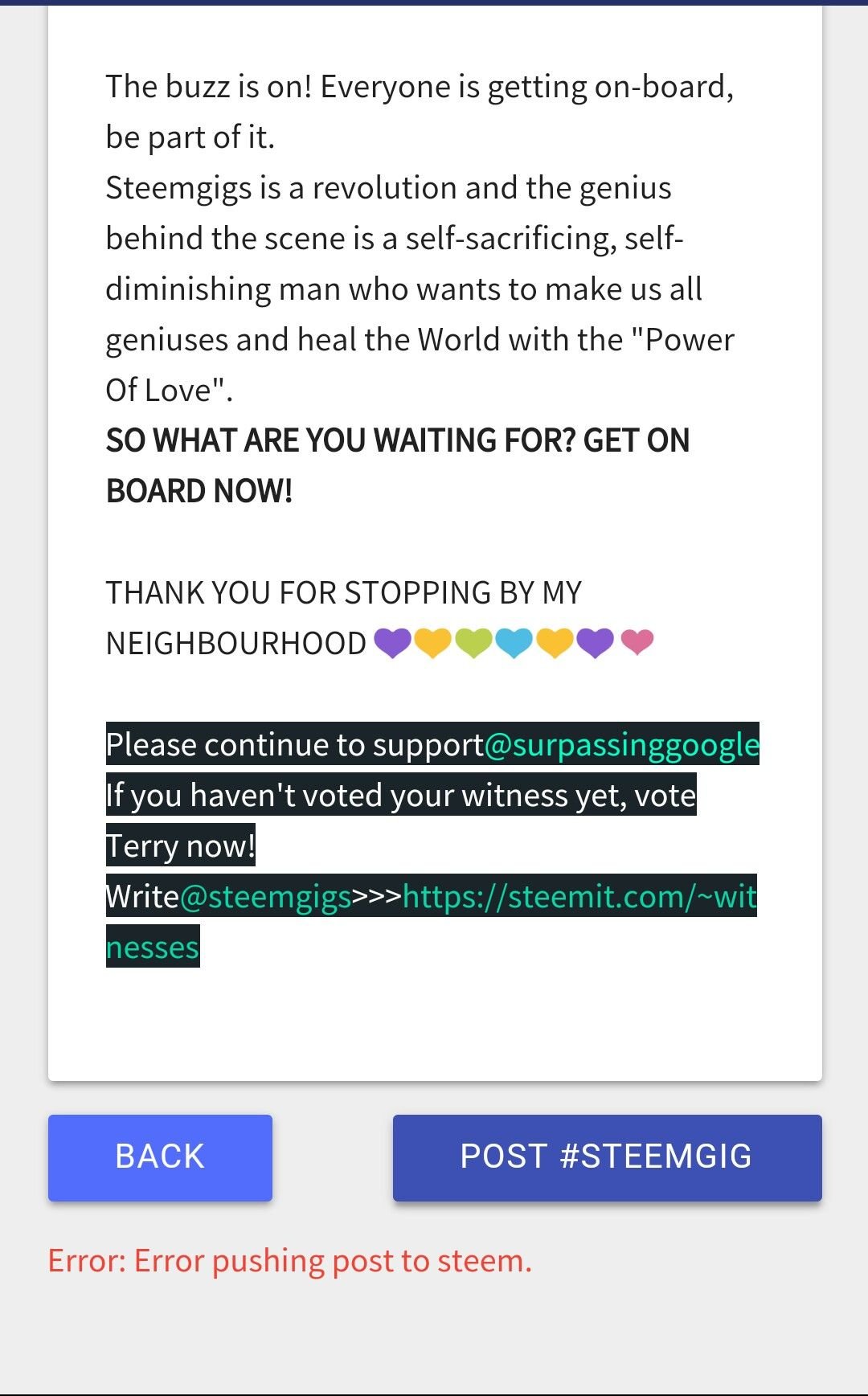 Im having a bit of a problem, @surpassinggoogle said you could help? I tried clearing the browser to no avail 😞 now im back to posting my steemgigs here on steemit and not on steemgigs.org. I really wish you can help me. Thank you in advance!