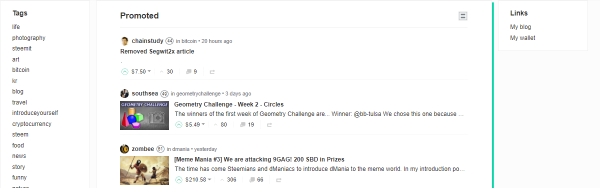 - The advertisement that has the highest user engagements (upvotes, comments, and resteems). The most important factor is the post pending payout value : the highest post pending payout will appear first on the promoted category (Could you imagine the competition of advertisements on this?). As a result, these companies will invest in SP, increasing the number of investors.