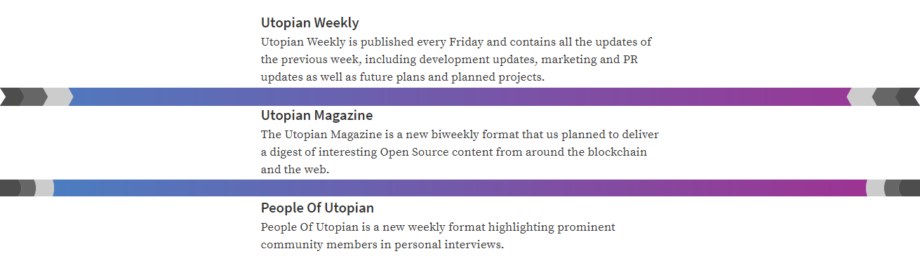 Utopian Weekly is published every Friday and contains all the updates of the previous week, including development updates, marketing and PR updates as well as future plans and planned projects.