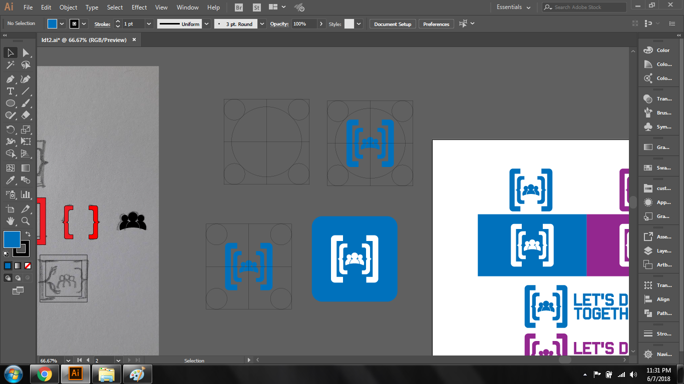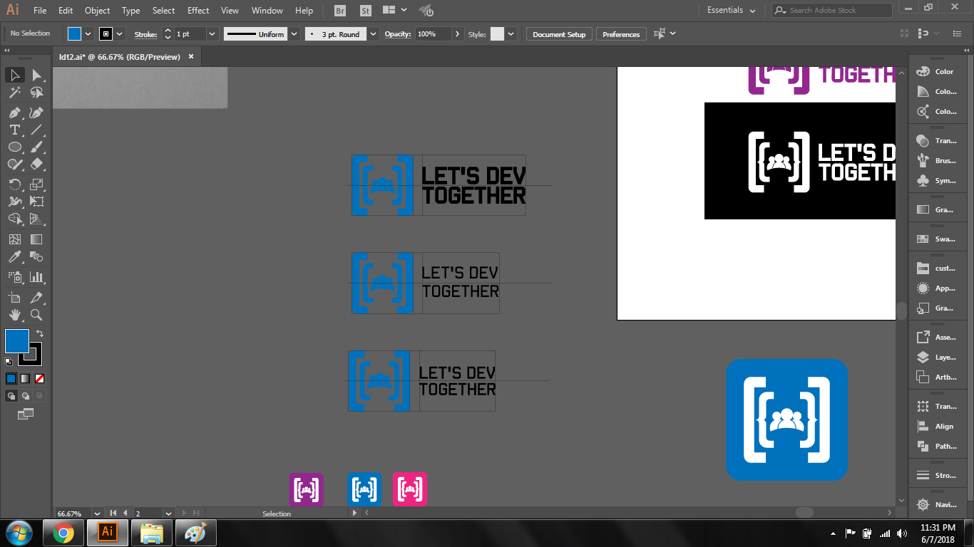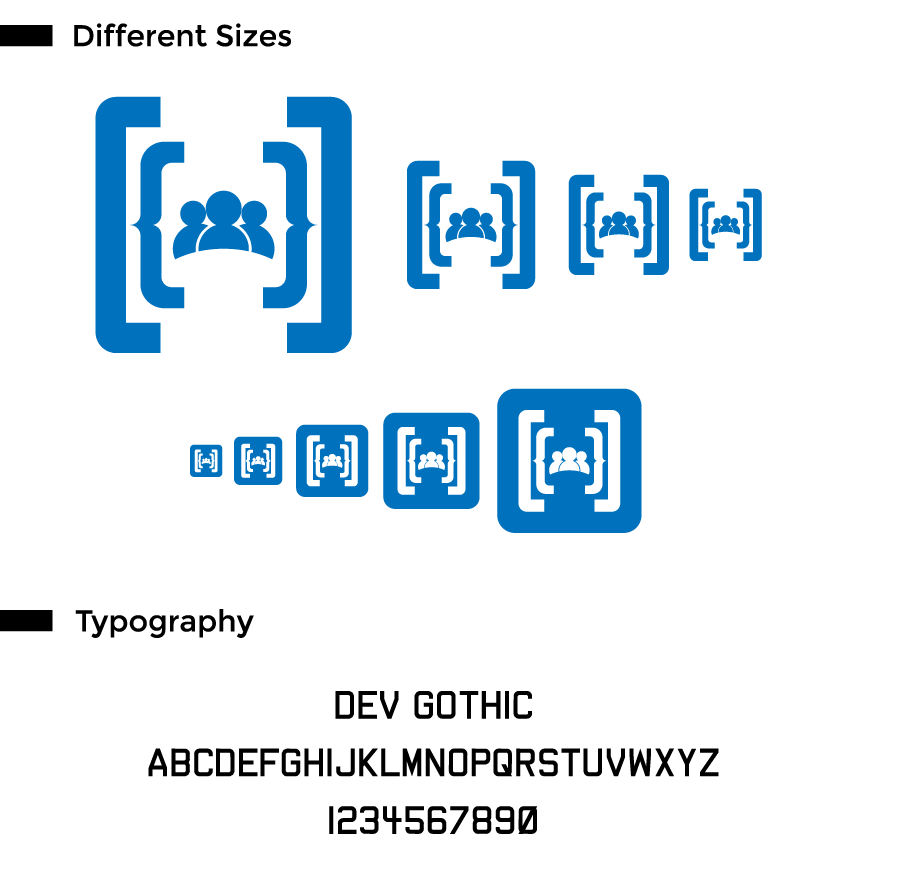 - The logo created is based on the components that needs in this task request, In my design I combined two of the most important symbols like the square and curly brackets with a group of people showing for their unity as a developers.