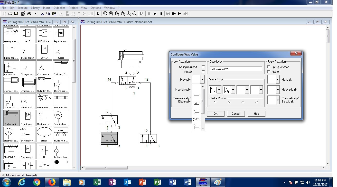 Configuring the 3/2 way DCV. Follow the steps as indicated in the figure below. But, first, double click the 3/2 way DCV so that a dialog box will appear.