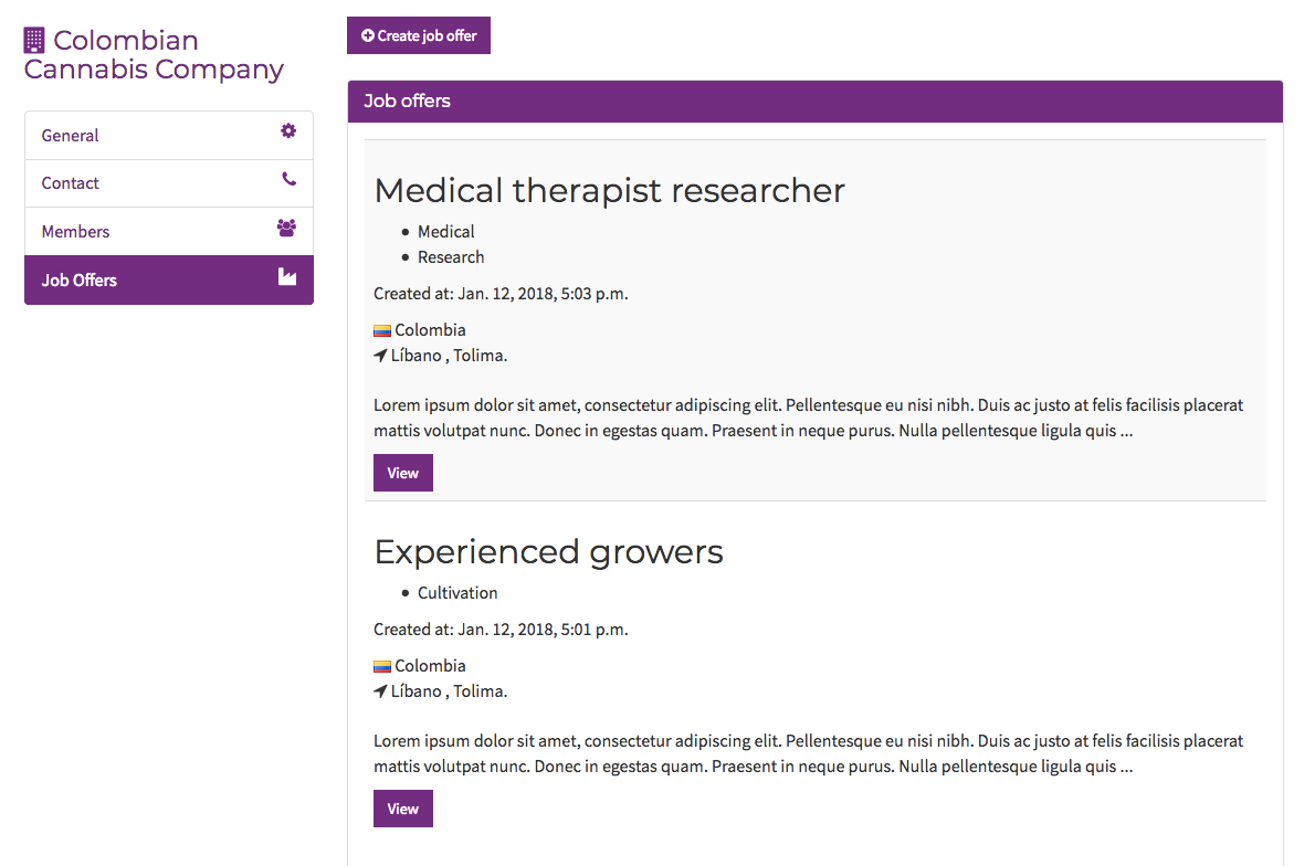 After submit the Job offer form, users will be redirected to the Job offers list of the company.