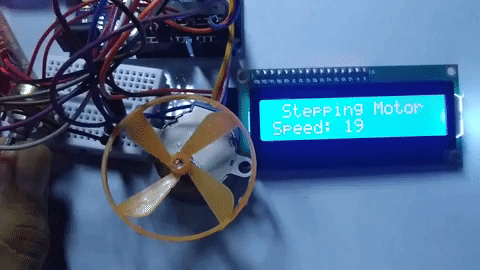 - Now, you can see the value of stepping motor rotation on the lcd you can control the speed by rotating the poentiometer.