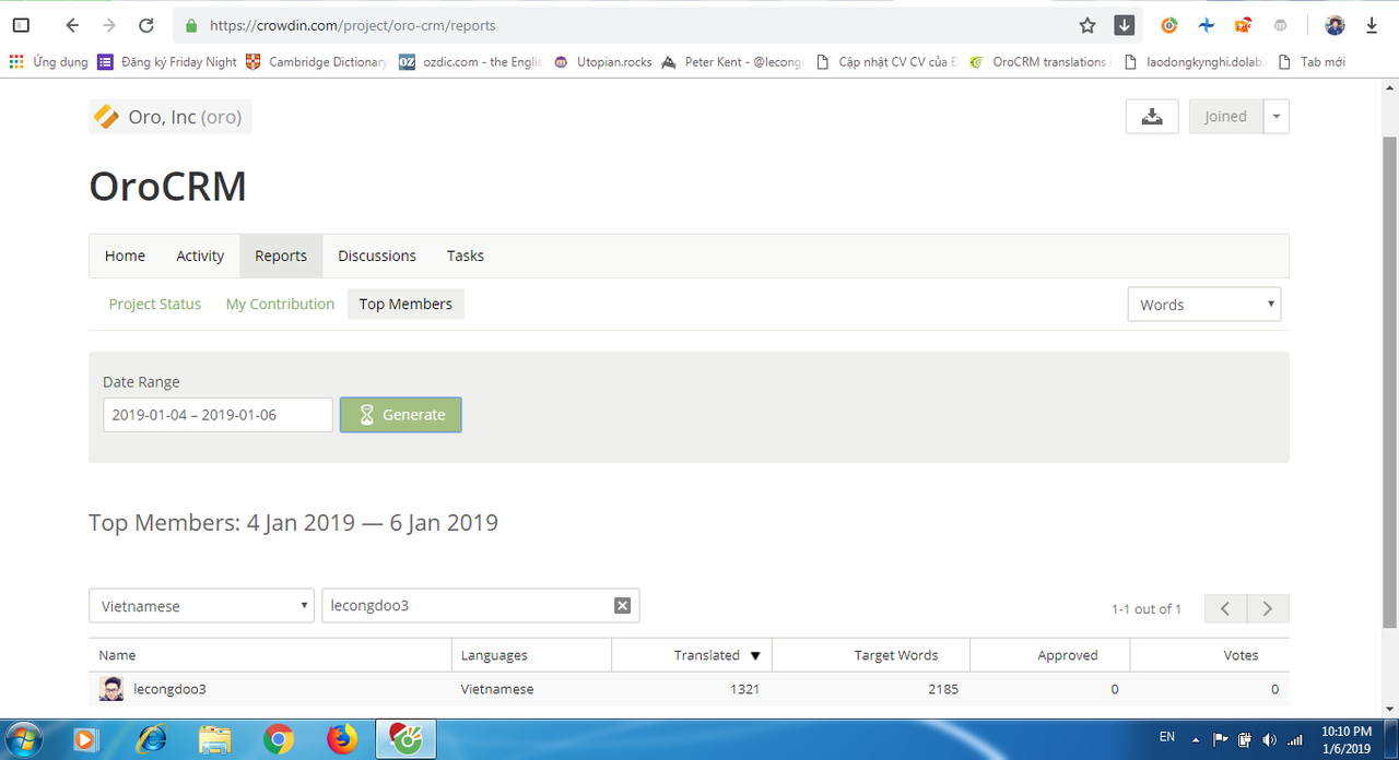 My work involves a translation of OroCRM from English to Vietnamese. This time, I had to deal with several parts of the projects. Thanks to that, I could somehow imagine clearly about what I've been taking care of and understood more about the marketing field. However, there were some terminologies that I was concerned a bit with, so I had to look them up in the specialized dictionary and went to the Internet to obtain more information and search for the exact Vietnamese meanings of the words translated. Additionally, I asked Carlpei for some suggestions.