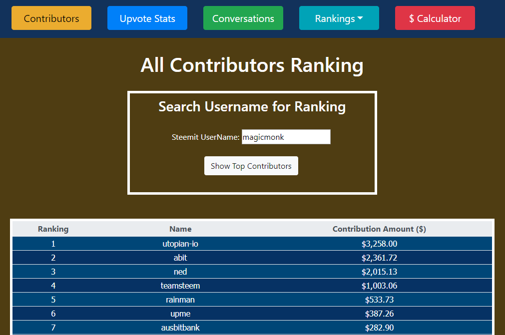 My Steemit Friends new feature: Ranking table showing total $ amount contributed by all of your contributors