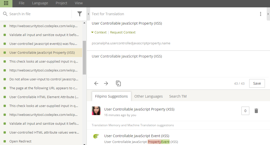 Done translating 503 words of OWASP ZAP, pscanrulesAlpha from 14% to 25%.