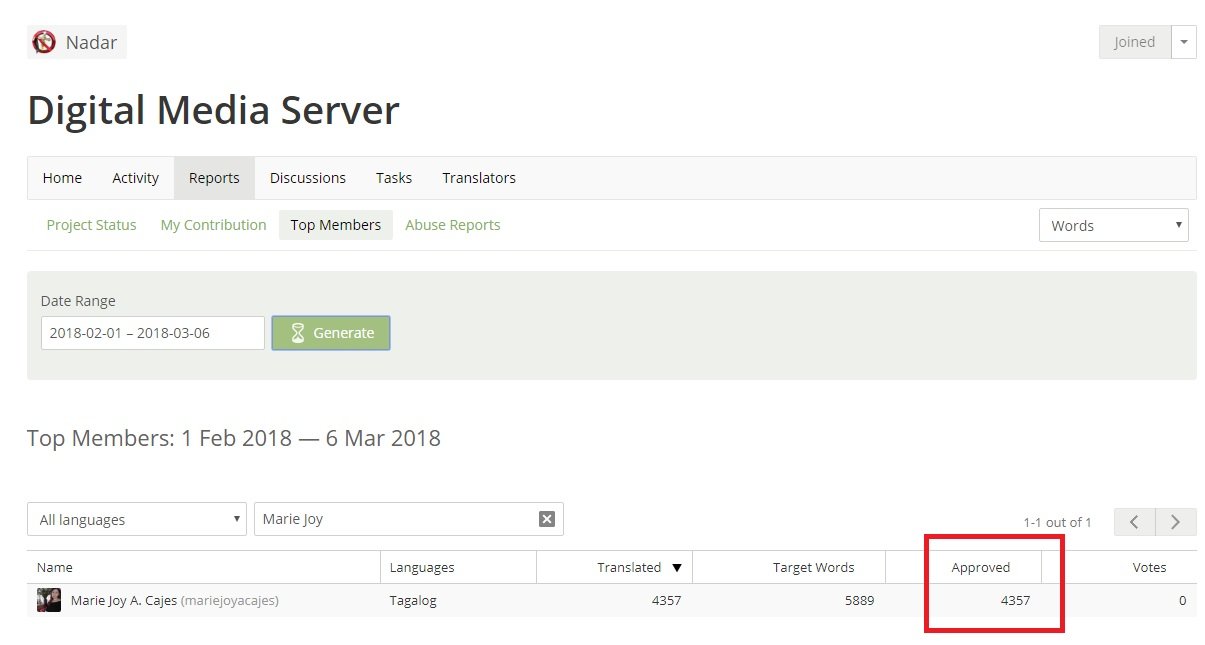 Write here the total number of words you have translated: 4,357 the total number of words i have translated