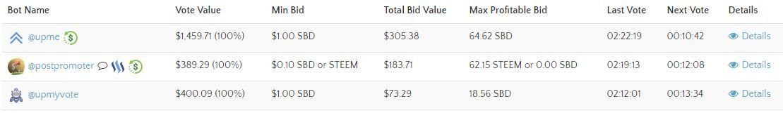 In the screenshot above you can see that while it is not profitable to send SBD bids to the @postpromoter bot it is still profitable to send STEEM. This is information that was not readily available on the site before.