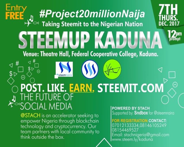 Post by @steemnaira community STEEMUP KADUNA - PROMOTING STEEMIT IN NIGERIA #project20millionnaija
