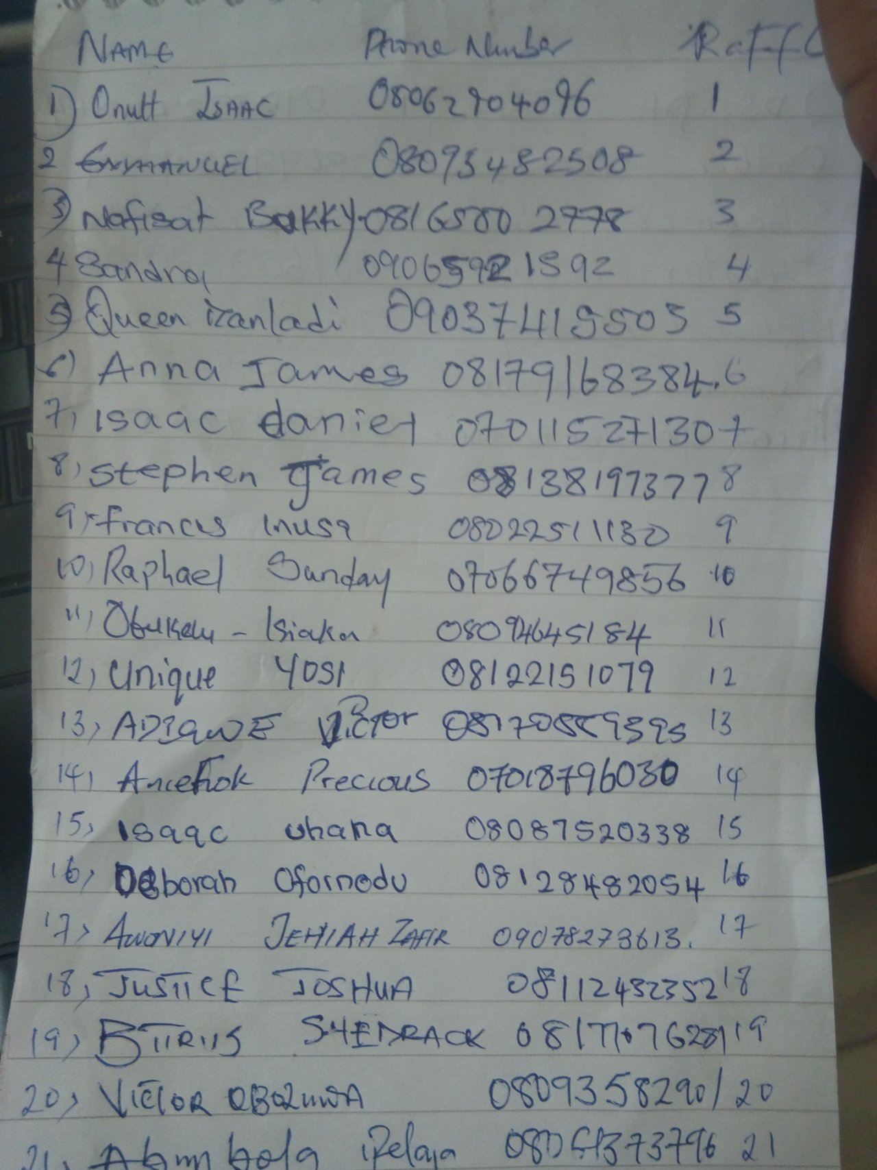 Here are the list of numbers we registered on the main event. We are following them up till there account gets approved.