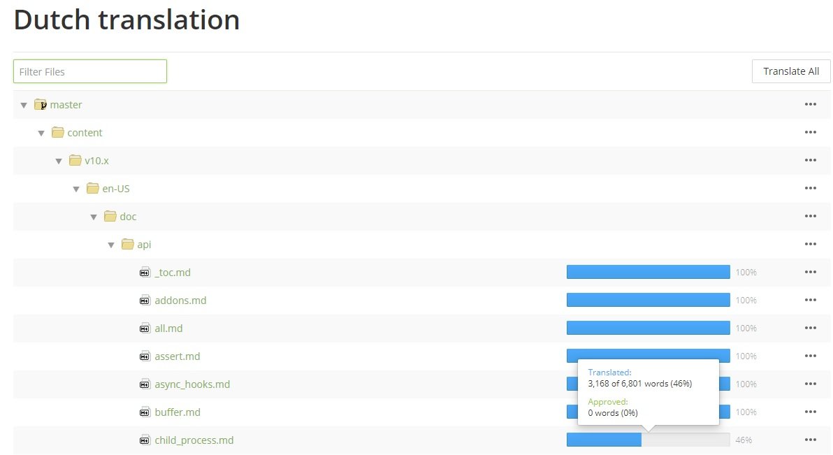 It explains the relationship between the 'parent' and 'child' in the Node.js world, as well as the different ways of coding to achieve one goal or another. It was quite interesting to know all this, and I truly hope it will help me in the future once I get the time to actually learn JavaScript. In the past month, I was excited to see a lot of projects and people mention Node.js. I realize that it seems to be used quite a lot in the daily life of a lot of programmers. This is great because it shows just how important it is to translate this project into all these different languages. Very fulfilling to work on this!