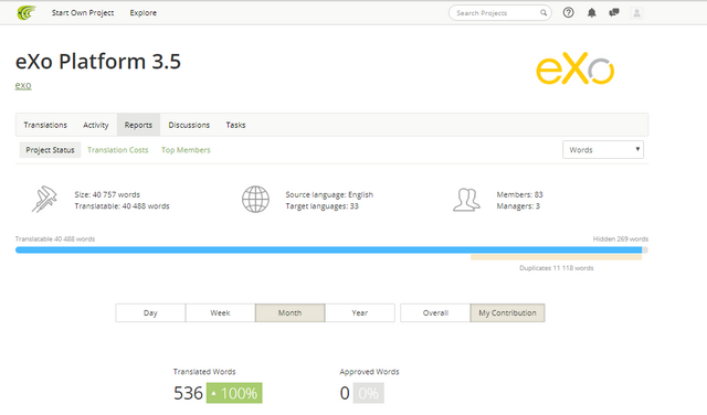Today I translated 536 word for eXo Platform 3.5 via Crowdin. Let's see my crowdin work.