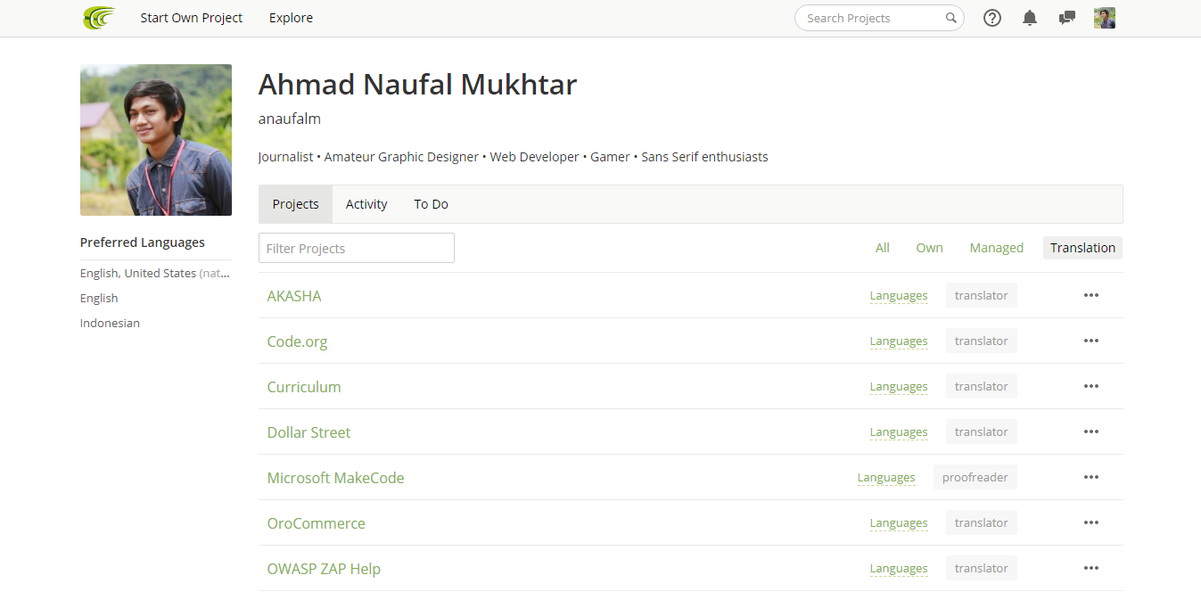 - My CrowdIn Profile