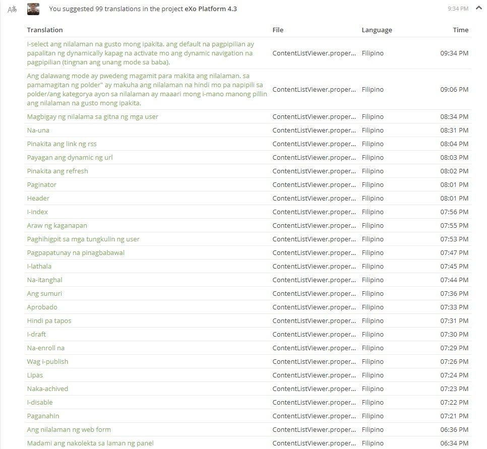 Translating 1,230 words of eXo Platform 4.3 English to Tagalog