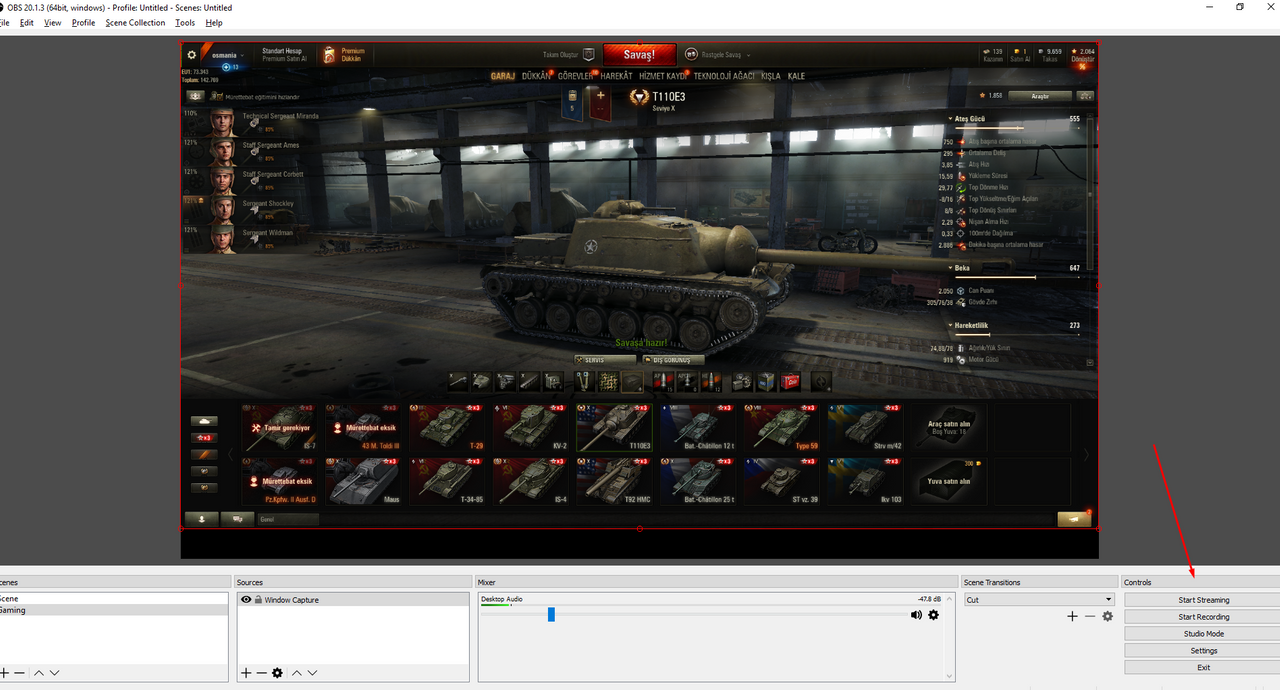 Windows Capture özelliklerinden yayın yapacağımız uygulamayı seçiyoruz.Ben World of Tanks üzerinden oynadığım bölümü yayınlamak istiyorum.