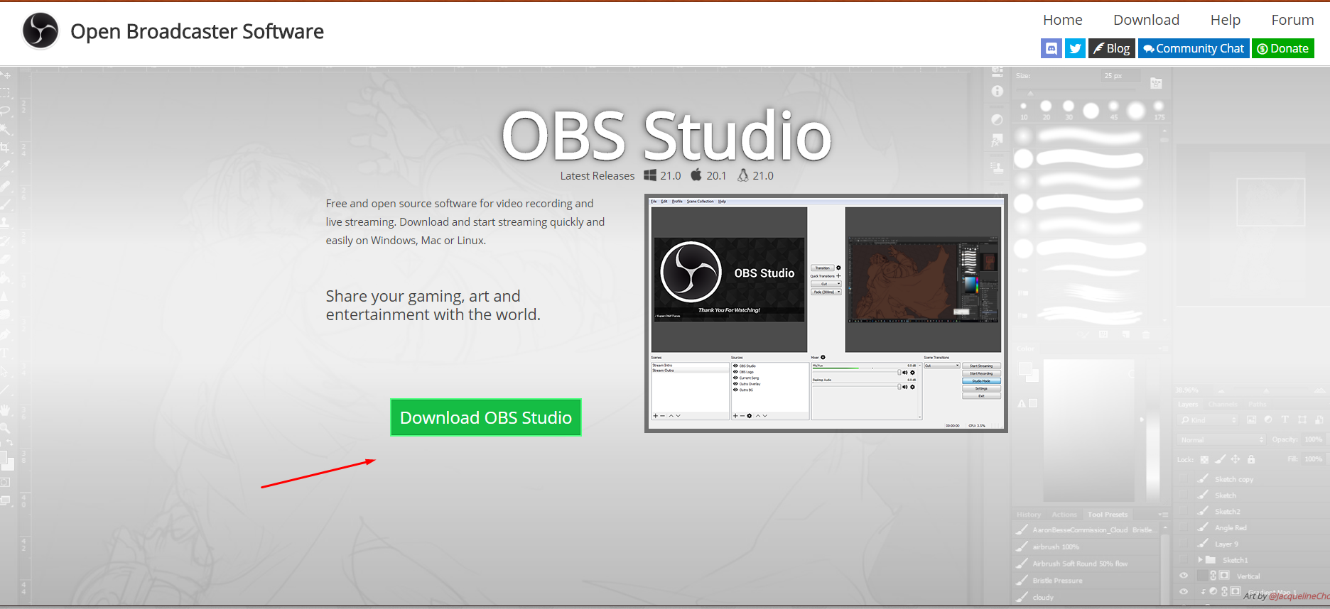 Öncelikle https://obsproject.com/ linkine gidip programı indiriyoruz.