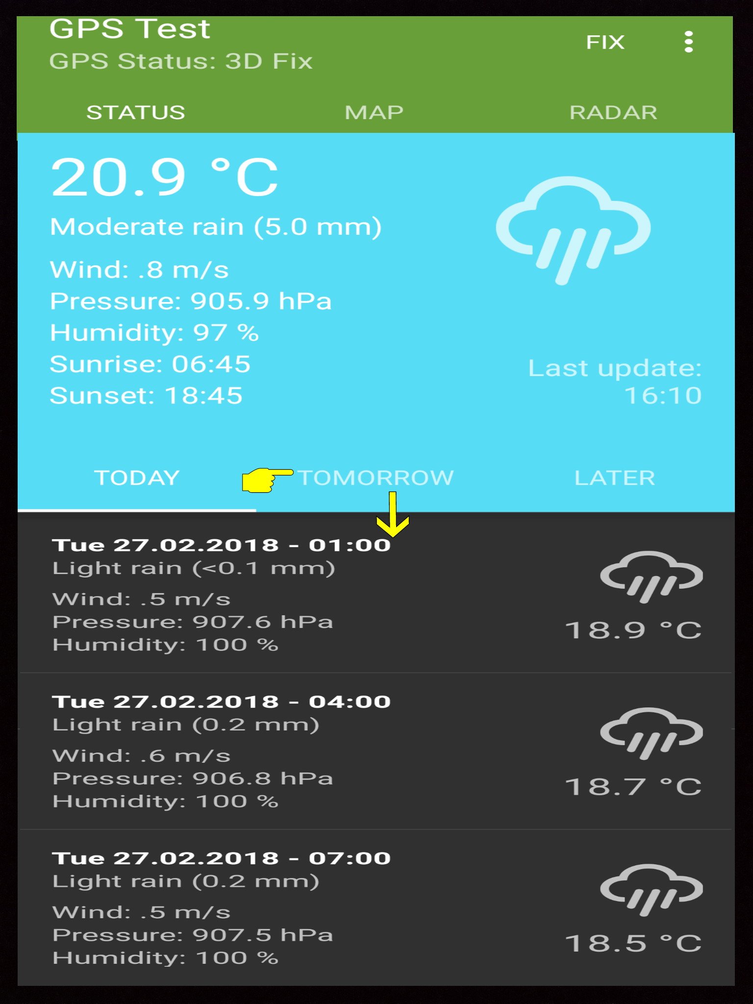 After installing the Gps Test application the user can display real time satellite display to the user's device. A tool to test gps for platfom engineers, developers and power users and help users to understand why GPS users do not work and fix it. As a user I propose to the developer to add "Augmented reality Azimuth" feature and then "gps-status of gps signal quality" feature also "size of the relative height point of the external parameters" section in GPS Test settings.