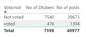 What I found very interesting from the data is that there have been 41K posts done via the dtube app. However @dtube have only voted on 2856 different posts.