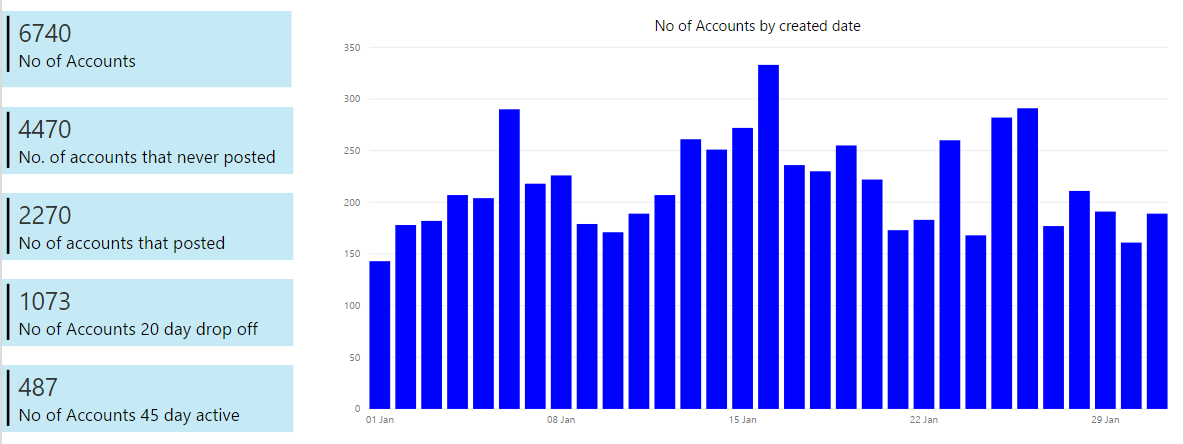 While sorting through this data I found a number of accounts that registered in Jan 2017 but only made their first or second post in the last 45 days. Welcome back dudes and dudesses