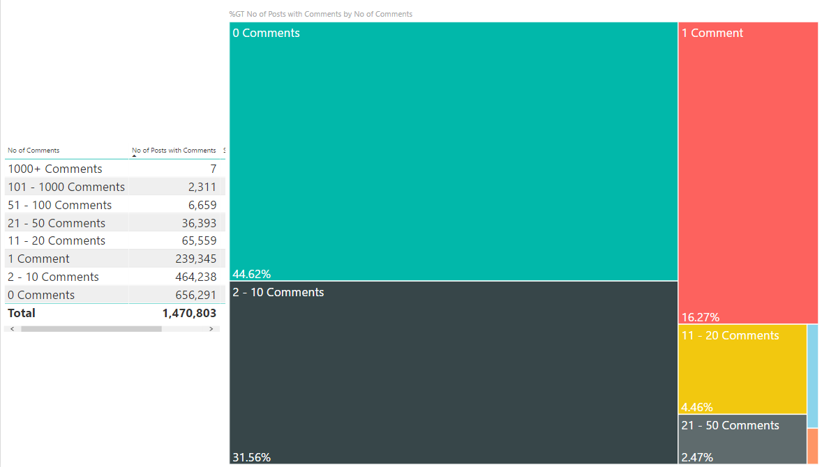 The % of posts that received no comments is down from 47% in Dec to 44.6% in Jan 18, this seem to be offset with the % of posts that received between 1 and 10 comments. The number of posts that received 1000+ comments also went up in Jan to 7 from 3 in December
