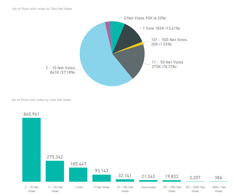 The % of posts with 0 net votes reduced from 10% in Dec to 6% in Jan and the % of posts with 2-10 votes increased from 48% to 57%.