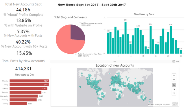 Looking at the new users by date in the November dashboard we can see a lull for the first number of days in the month and then a spike on the 10th Nov. For those of you that wish to query this, Steemfest 2 was on and I am sure that most of the team were busy with that at the time.