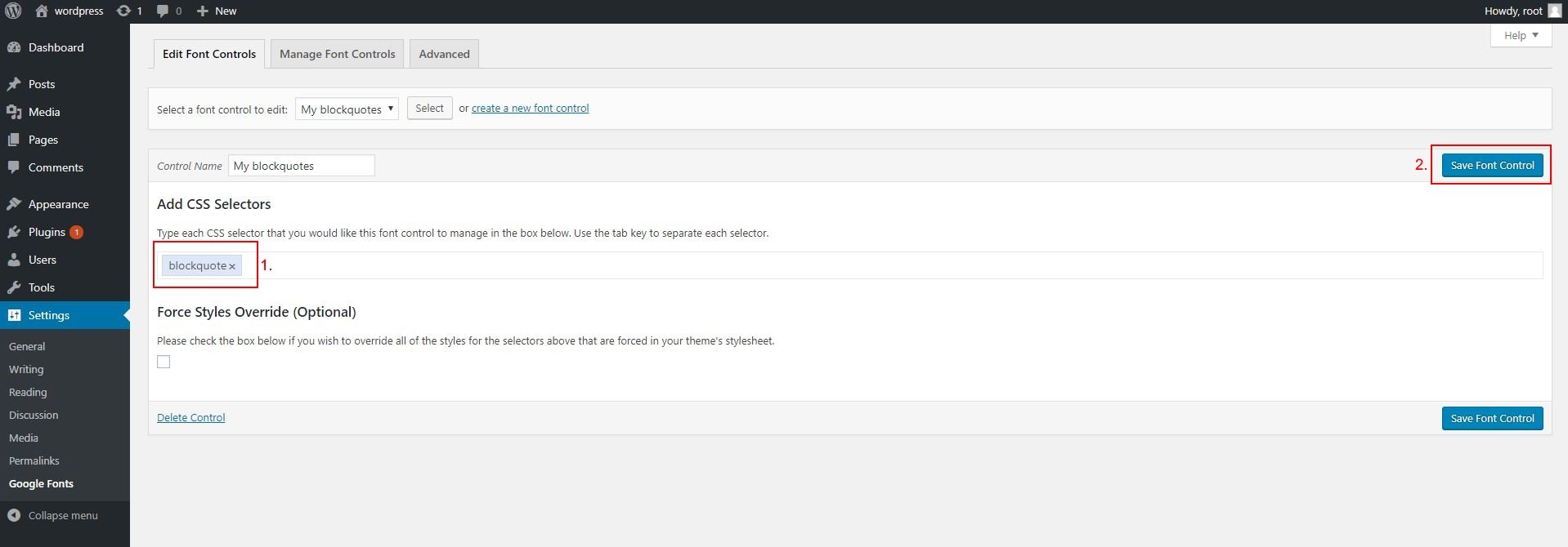 - Click "Save Font Control"