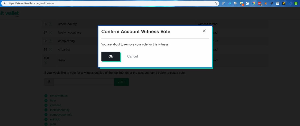 Steem Witness vote removal highlight and confirmation