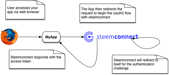 How do you get the access_token? If you observe from the above diagram, steemconnect sends a request back to the application. It knows how to send this request because it is using the redirect_uri we mentioned earlier. It's basically a breadcrumb you left earlier.