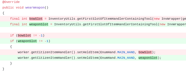In the third batch, I first fixed an issue where the world crashed because of the huge pathfinding range of certain workers. I quickly found out that this was related to some workers trying to path to the origin block in certain moments since their actual target was not correctly set yet. To avoid this I added a check to the base method.