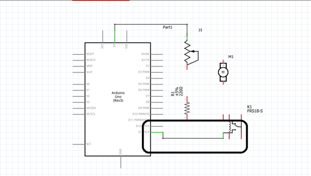 This current output from the transistor is then fed to the 5V relay. The relay will trigger, switching the battery to connect to the dc motor making it to activate.