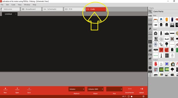 - Open the fritzing software.