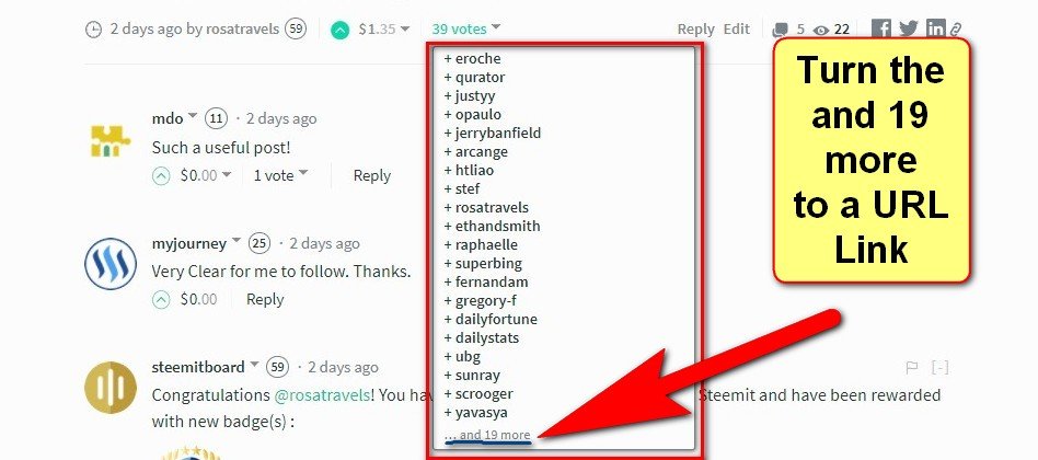 So if the "and 19 more' can turn into a URL link, then we can click on this link to see all our voters. Seeing all our voters will help us engage with ALL the people who have upvoted us.