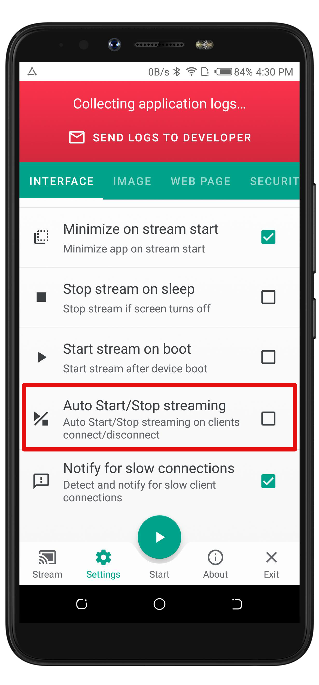 The previous version of the project lacked this feature, and still, no one complained. But, since it's now available, then, it's a plus-one for ScreenStream over its competitors. This option would make users have a stress-free experience while using the app.