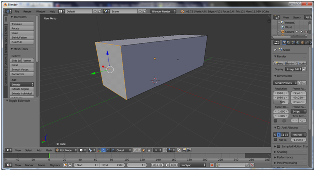 18.Kemudian potong bagian sudut kiri object menggunakan Ctrl+R