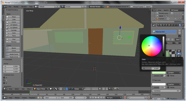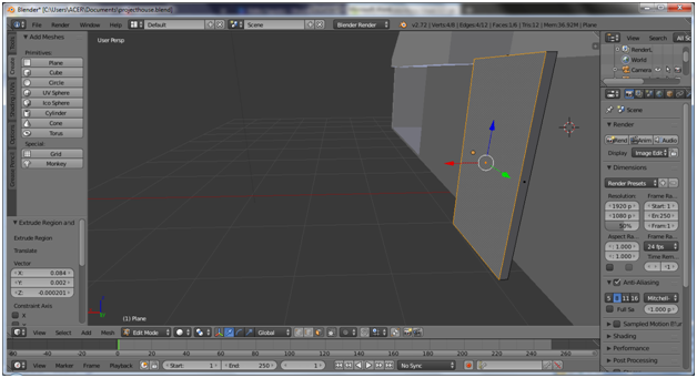 35.Tambahkan lagi object plane (untuk jendela), klik Ctrl+A pilih Plane
