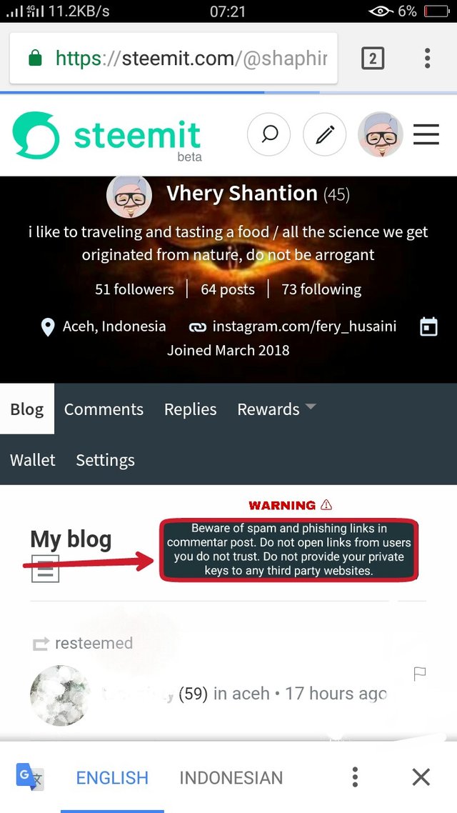 with the warning, steemit users will find out if there are any spam-shipped links in their post comment field. Especially for new users, this warning is very important.