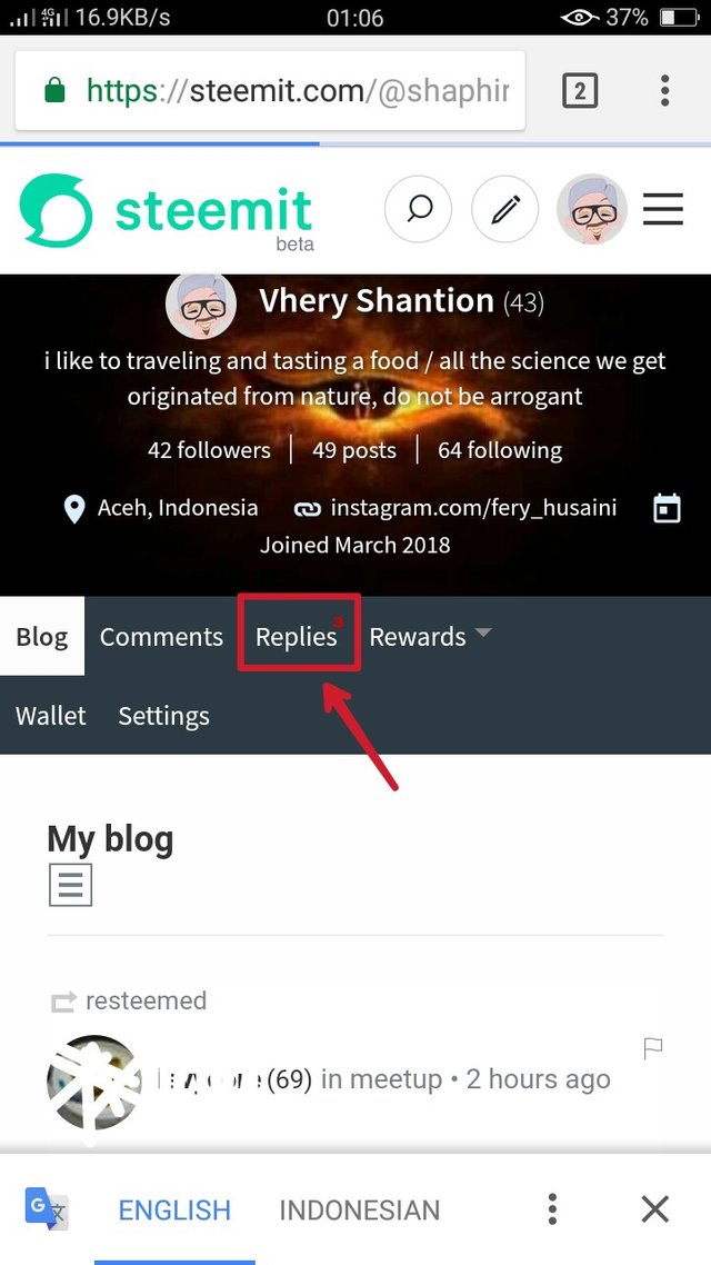 suggestion of a warning in My blog and notification of the number of comment replies in a Steemit