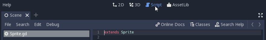 - Line 1 is the extends statement, for which defines this script as extending a Sprite