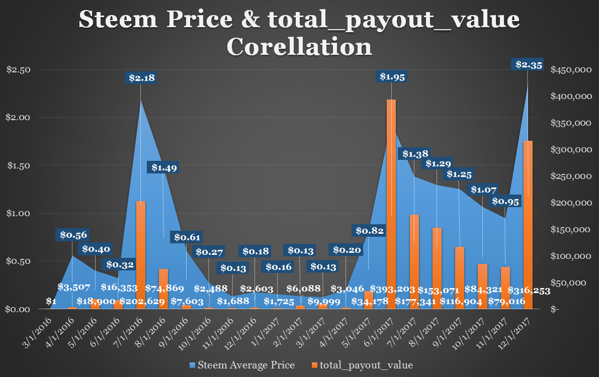 Steem Price & total_payout_value Trend Per Month