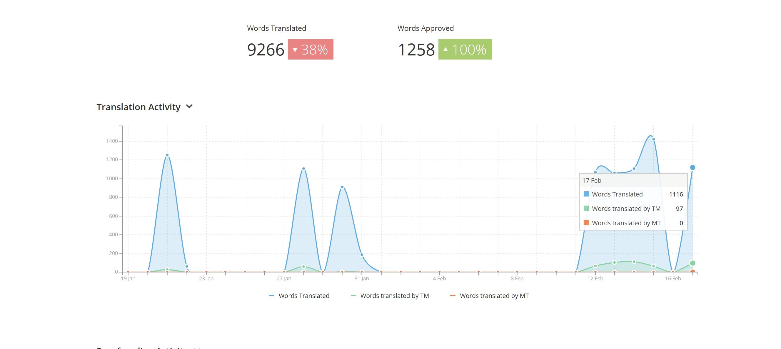 Total graphic report shows 1,116 words completed, I guess maybe the non-translatable words are also included in this report and some proofreading correction, hence the variance with top member report.