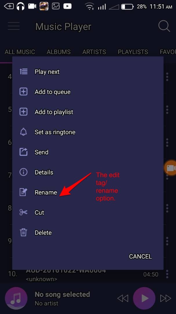 While trying to scribble on simple music player, I noticed that I can't edit a particular music that's shows anonymous names unlike some music players like shuttle and Walkman music players which have edit tags.