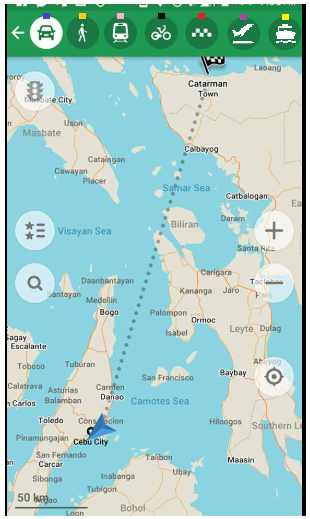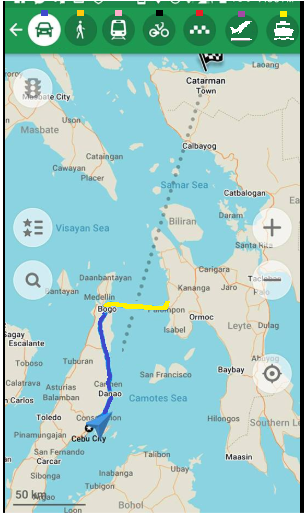 All the means of transportation provided by Maps.me are by land transport. But, there are places that cannot be covered through land. Example, a place on the other island. I have tried to navigate going to a place in the island using maps.me and it gives inaccurate result like the picture below. There are no available ports where the map said to so.