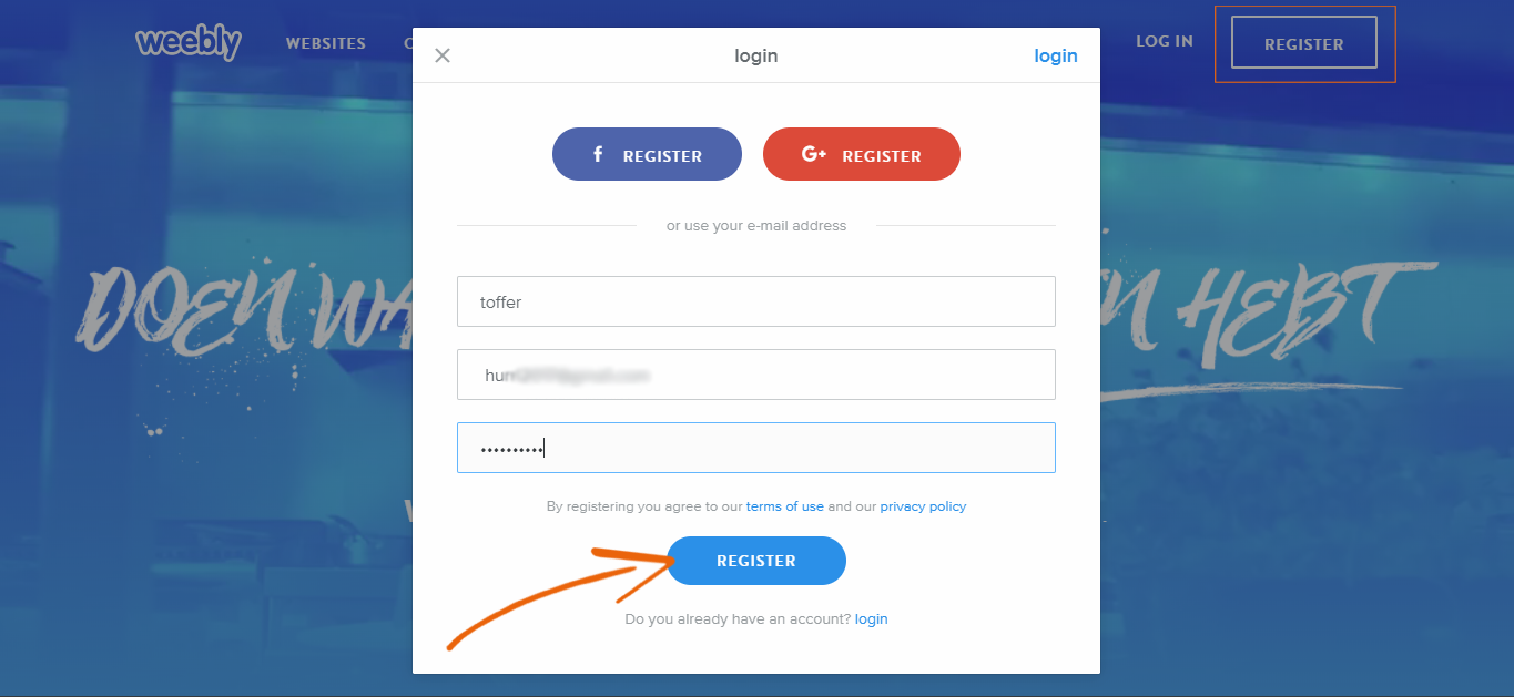 First is go to weebly.com you can sign up using facebook account or google + or you can register using your email account you put the following settings: