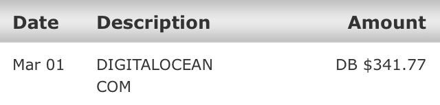 One other comment I wanted to make regarding tests with droplets and volumes is that the storage volumes that are created when creating a droplet aren't actually deleted when the droplet is destroyed and there is a separate step to destroy a volume. I actually had three $50/month volumes that I wasn't using but still being charged for which I incorrectly assumed were deleted when I deleted the corresponding droplet. Fortunately, however, I noticed them and deleted them after only a few days.