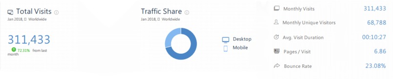 In January there were a total of 311,433 visits, which is 72% more than the month before. The most interesting numbers as always are the unique visitors which totals 68,788 in January. We can see that Utopian is growing rapidly but still has some way to go.