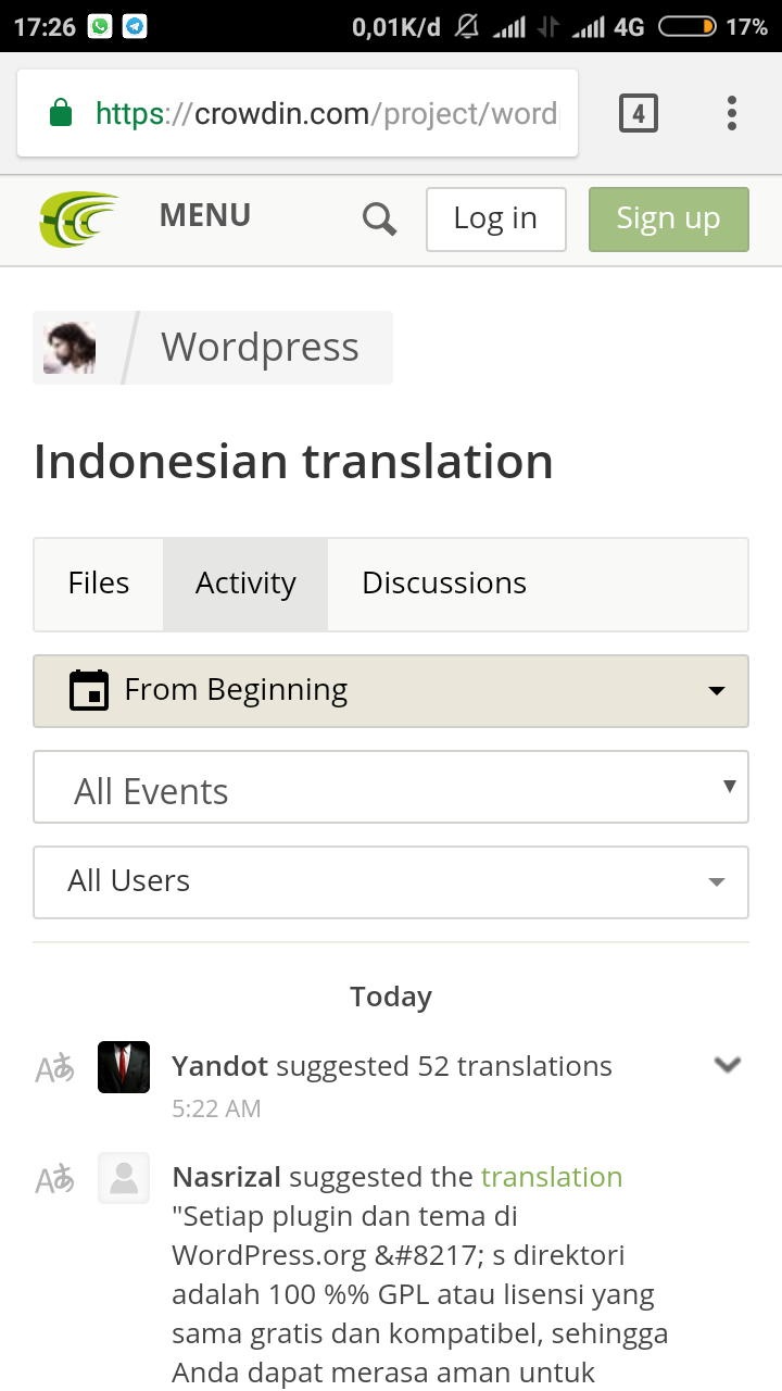 Today i will continue contribution to with project translation "Wordpress" to in translation into Indonesian language.