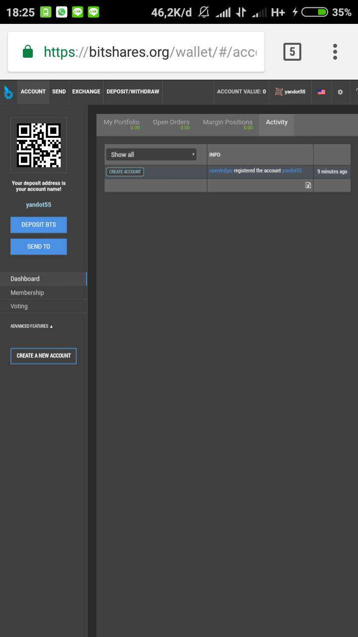 Langkah 7 : Buka akun dompet bitshares