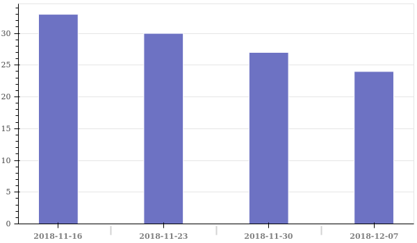 As you can see, the weekly number of reviews is down from 27 to 24. Unfortunately this seems to be following a trend, as the number of contributions over the last two weeks is also down from 63, in the two weeks prior, to 51.