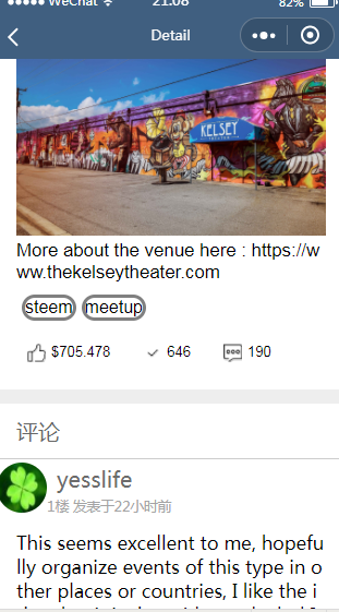Add to the wxml file to create the Ui to show the vote and comment and pending payout information.